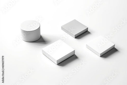 A minimalist, all-white mockup of a blank notebook with a coffee. Ai generated.