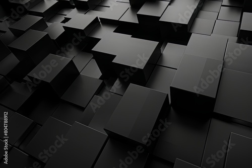 A minimalist and modern image showcasing a geometric arrangement of black cubes on a matte surface, ideal for abstract art and design themes.