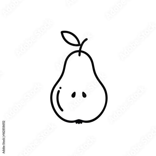 A minimalist black outline illustration of a pear half, showcasing its natural form and two small seeds, perfect for healthy eating concepts or fruit-themed designs.