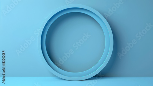 A minimalist blue circular frame, artistically displayed against a matching blue wall, evokes a sense of calm and simplicity in design.