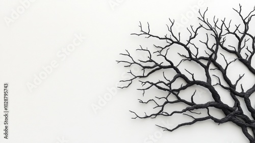 A minimalist composition featuring a striking black tree branch against a clean white background, ideal for artistic designs.