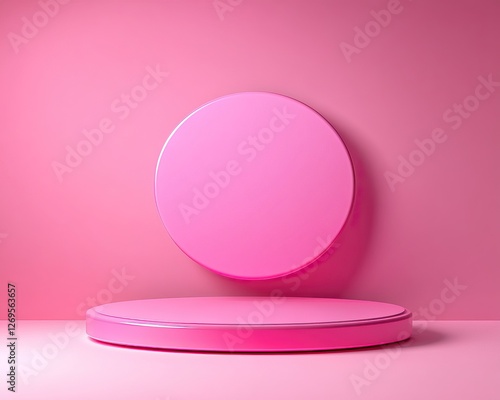 A minimalist composition featuring pink circular platforms against a matching pink background, creating a vibrant, modern aesthetic.