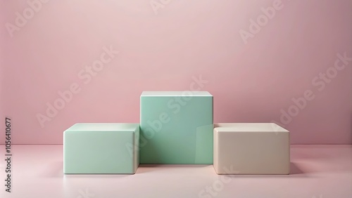 A Minimalist Composition Featuring Three Cubical Platforms Against a Soft Pink Backdrop
