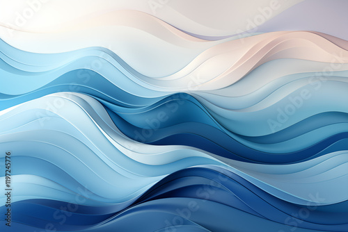 A minimalist depiction of ocean waves using flowing lines and gradients in varying shades of blue, from deep navy to soft teal