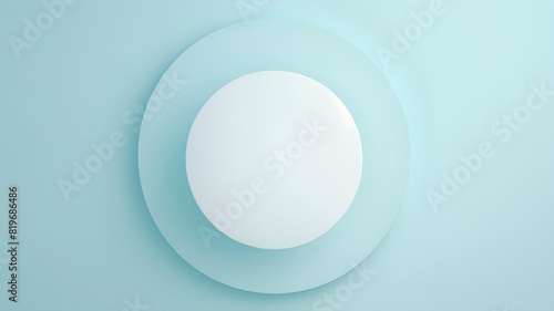 A minimalist design featuring an opaque white circle at the center, set against a soft blue background. The design, characterized by its simplicity and modern aesthetic