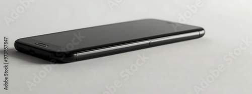 A minimalist design of a sleek black smartphone with a blank white screen, isolated on a plain white background, ideal for product mockups and tech presentations
