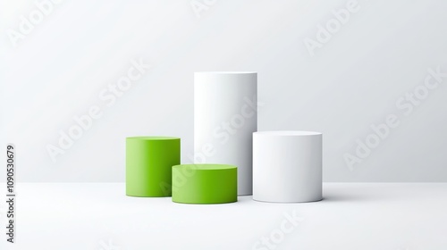 A minimalist display of cylindrical shapes in green and white, suggesting growth or progress.