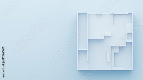A minimalist floor plan design set against a soft blue background, emphasizing simplicity and spatial layout.
