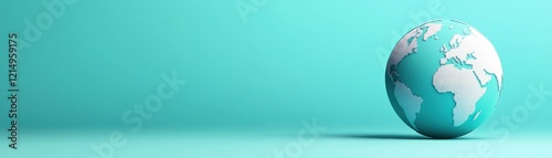 A minimalist globe illustration on a teal background, emphasizing the Earth's continents with a modern design.