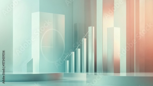 A minimalist graphic showing an ascending arrow and bar chart, rendered in clean metallic tones, with soft lighting and abstract geometric shapes in the background.
