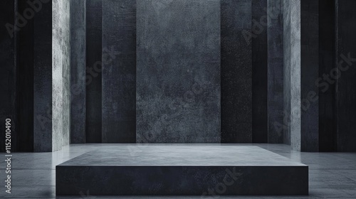 A minimalist gray concrete space with vertical panels, ideal for presentations or displays.