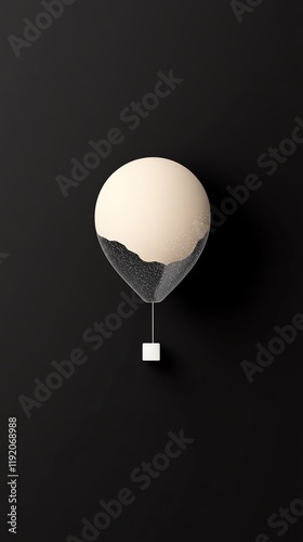 A minimalist illustration of a balloon with a cream-colored top and a textured bottom against a black background.