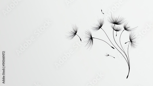 A minimalist illustration of delicate dandelion-like flowers, showcasing their intricate details against a plain background.