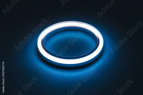 A minimalist image of a glowing neon circle on a dark blue background