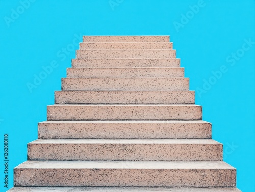 A minimalist image of a set of concrete stairs ascending against a bright turquoise background, symbolizing progress and elevation.