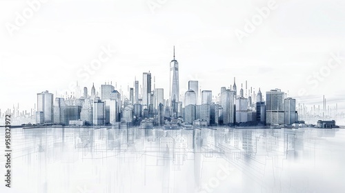 A minimalist line drawing of a city skyline with iconic buildings in a clean and simple design, creating a modern and artistic atmosphere.