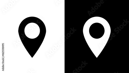 A minimalist location marker icon, presented in black and white, symbolizes navigation and placefinding.