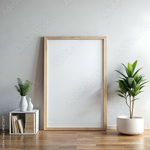 A minimalist mockup featuring a large framed canvas against a white wall. perfect for showcasing your artwork. photography. or branding.