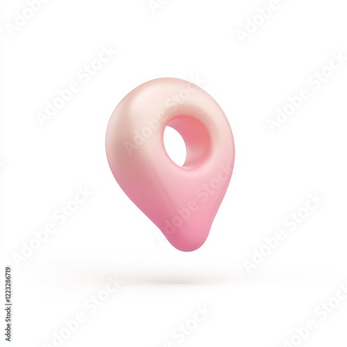 A minimalist, pink location pin icon, floating against a plain background, designed with a smooth, modern aesthetic.