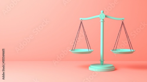 A minimalist representation of justice with a classic scale on a soft coral background, symbolizing balance and fairness.