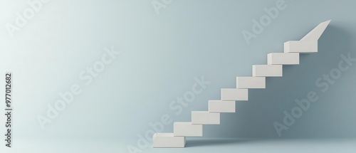 A minimalist staircase ascends against a light blue wall, symbolizing progress and upward movement in a modern and serene setting.