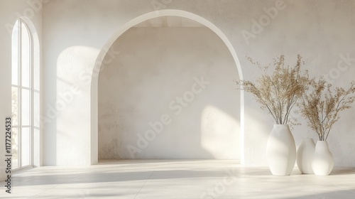 A minimalist white podium with a soft arch, ideal for product displays, design concepts, or minimalist interior inspirations.