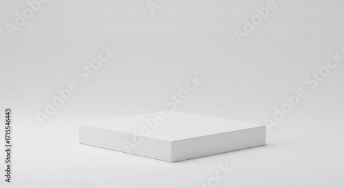 A minimalist white square pedestal isolated against a plain white background, perfect for product display.