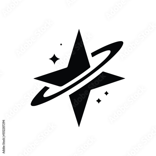 a minimalistic design with a star shape and a planet orbiting around it