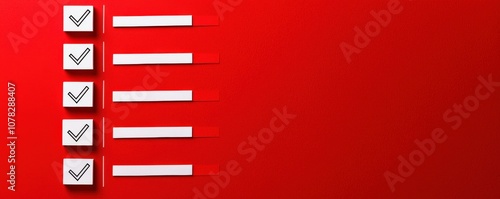 A minimalistic image featuring checkboxes on a red background, suggesting a checklist or task completion theme.