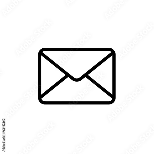 A minimalistic line-drawn icon representing an envelope signifies the concept of message delivery in a straightforward manner, ideal for digital use