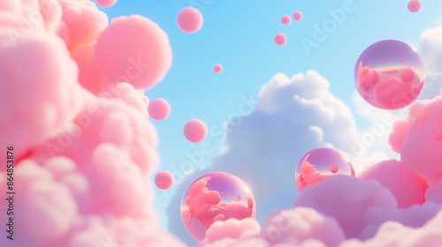 A minimalistic, multi-colored background with elegant clouds and glossy spheres, creating a unique and trendy abstract design. Perfect for creative concepts or children's art projects.