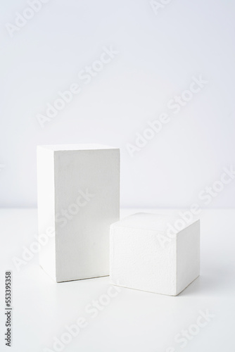 A minimalistic scene of a gypsum podium on white background, for natural cosmetics