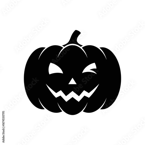 A mischievous black jack-o-lantern silhouette winking with a jagged, toothy grin.