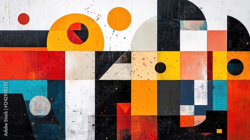 A modern abstract acrylic painting with geometric forms and bold color contrasts