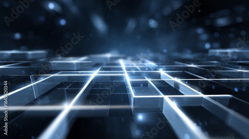 A modern abstract background with a geometric pattern of white squares on a deep dark blue texture ideal for digital art and futuristic technology presentations.