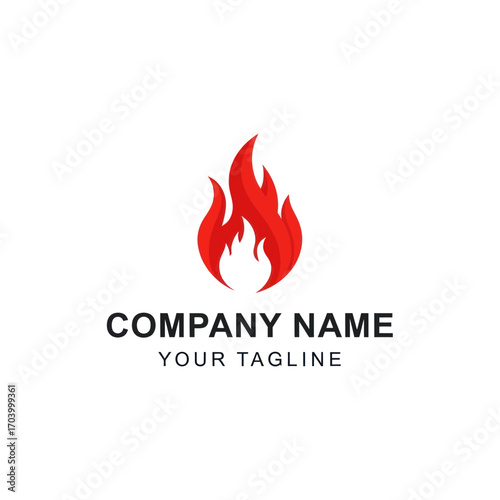 A modern and simple logo design featuring a stylized red flame icon above placeholder company text.