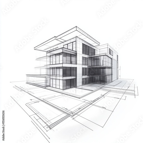 A modern architectural sketch of a contemporary building in a minimalist style.