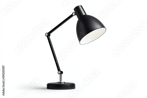 A modern black desk lamp with an adjustable arm, perfect for providing focused light in workspaces or study areas.