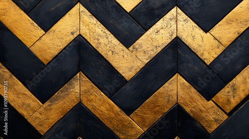 A modern chevron pattern in black and gold creating a bold and dynamic design.