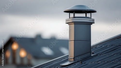 A modern chimney stands prominently against a twilight sky, blending functionality with sleek design.