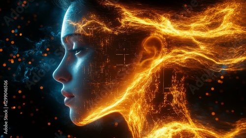 A modern circuit board with luminous orange and blue tracks, signifying swift data flow and advanced tech capabilities