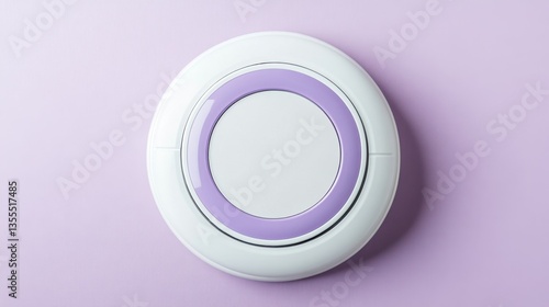 A modern digital ring sizer with a circular measurement tool, resting on a soft lavender backdrop.