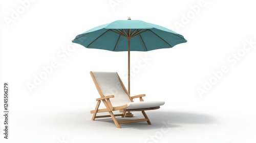 A modern, ergonomic beach chair with a solid-color umbrella, isolated setting