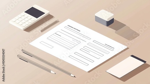 A modern form with blank fields for registering personal information, such as name, email, and phone number, presented in a simple and visually appealing isometric style.