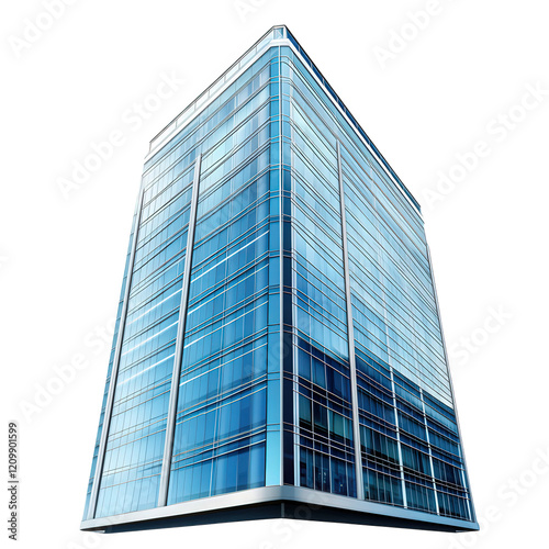a modern glass skyscraper with a sleek. angular design. showcasing reflective blue glass panels and a contemporary architectural style the structure appears to be a commercial building. emphasizing mo
