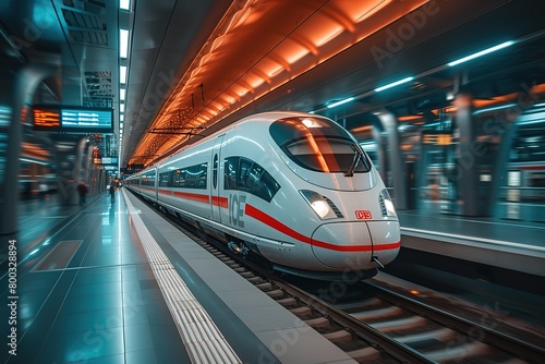A modern high-speed train entering a gleaming, glass-enclosed station, representing the pinnacle of modern transportation
