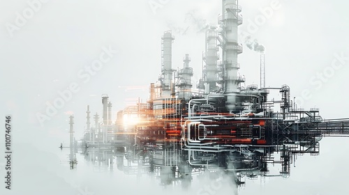 A modern industrial complex with towering structures and intricate piping, reflecting innovation in the energy sector.
