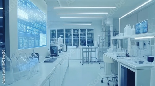 A modern laboratory space equipped with advanced technology and research materials.