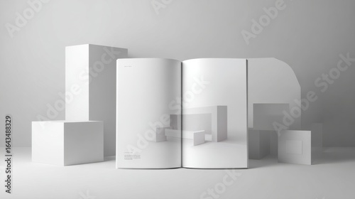 a modern, minimalist design featuring a white cardboard cut out of a house set against a white background