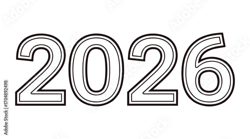 A Modern outline 2026 design on a white background. Happy New Year 2026